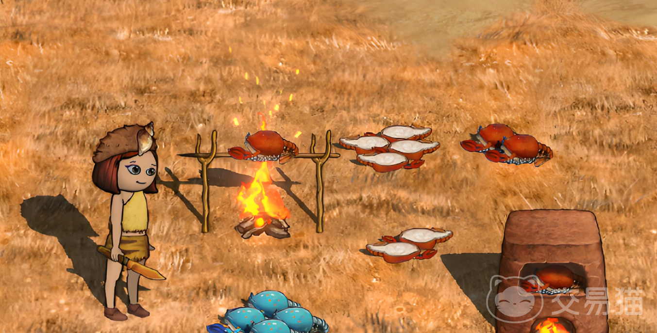 不同食物有不同的食用方式,部分可以生吃,但多数需经过加工处理后才能安全食用。以番薯为例,它是一种生长于地下的块茎类作物。玩家发现其位置后,需使用棍棒将其挖出,再用燧石刀具切成薄片。随后点燃火堆,并在上方放置一块扁圆石头加热。待石面温度升高后,将切好的番薯片置于其上煎熟即可食用。
