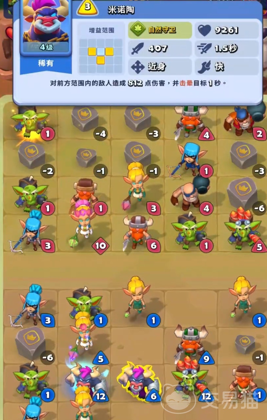 第二套推荐阵容为:米诺陶+狮鹫+歌星+果冻骑士。这套配置舍弃了传统辅助角色,专注于极致输出与高效推进,适用于希望迅速结束战斗的玩家。米诺陶作为前排主力战士,兼具高防御与强冲击力,能够主动突入敌阵并击退多个目标,承担开团与控场双重职责。