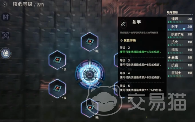 随着核心等级进一步提升,古珀系统也将开启。该系统设有六个装备槽位,允许安装不同类型的古珀石。古珀按属性划分为九种类型,包括迅风、寒冰、炎火等元素类,以及拓荒、庇护等功能类。品质方面则分为小蓝(低阶)、中紫(中阶)和大橙(高阶),品质越高所提供的属性加成越显著。更重要的是套装效果的触发机制——只要装备两个相同类型的古珀,即可激活基础增益;若凑齐四件套,则会额外解锁强力被动。例如坚岩古珀四件套可在受到攻击时生成护盾,极大增强角色的抗打击能力。