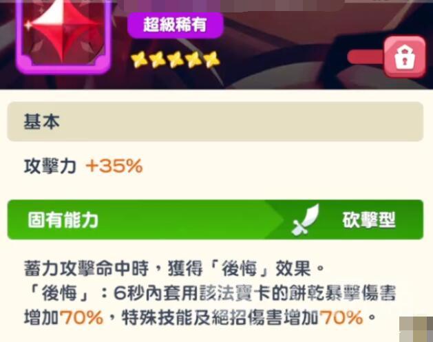 星级成长对黑巧克力饼干的实战强度影响显著。二星时解锁初始即满被动层数,入场即可享受8秒攻击力翻倍,极大提升了开局爆发能力;四星进一步强化黑暗剑击,附加相当于20%攻击力的闪电伤害;满星则使必杀技获得50%防御穿透效果,进一步提升面对高防目标的输出效率。搭配法宝卡“后悔”可形成强力组合,该卡在蓄力命中后提供6秒内暴击伤害+70%、技能伤害+70%的增益,配合被动叠层可实现整体伤害接近三倍的爆发输出,使其在关键战斗中具备决定性作用。