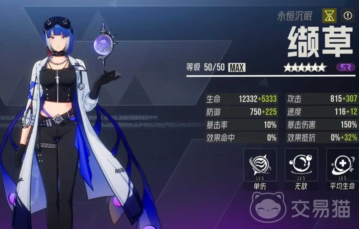 作为团队中不可或缺的生存保障型角色,缬草具备免死机制与无敌保护能力,能显著提升队伍的持续作战能力。她的技能“沉梦”可对敌方造成240%伤害,并有40%概率附加睡眠状态;“泡影”则能为指定队友提供1回合无敌效果,随后为全体队友施加1回合持续恢复,若目标生命值低于50%,该恢复效果将延长1回合。