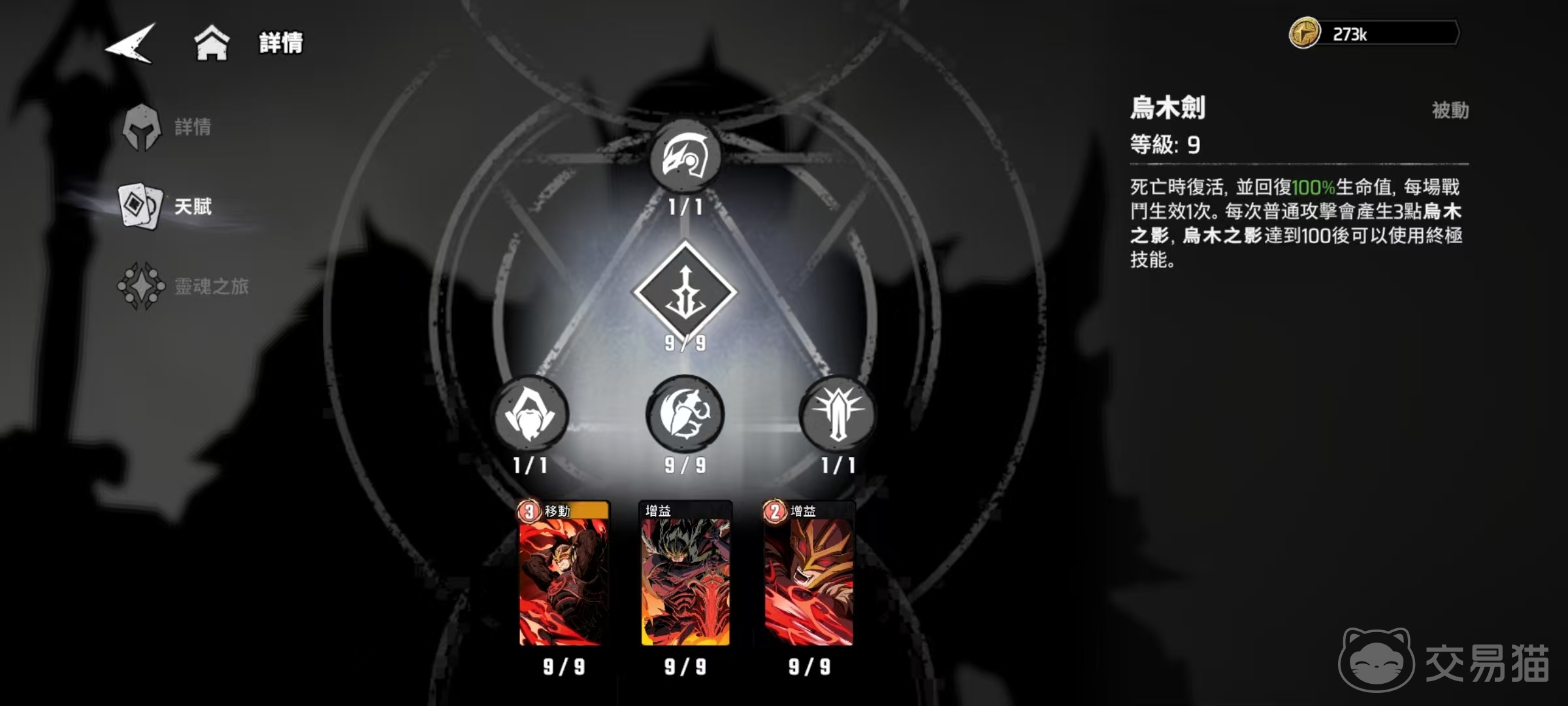 黑骑士定位为近战战士职业,其核心机制围绕“乌木之影”展开。被动技能名为乌木剑,可在每次战斗中触发一次:当角色生命值归零时自动复活,并恢复全部生命值,极大增强了战场生存能力。普通攻击每次可积累3点乌木之影,当影值达到100时即可释放终结技,是技能循环的关键资源。