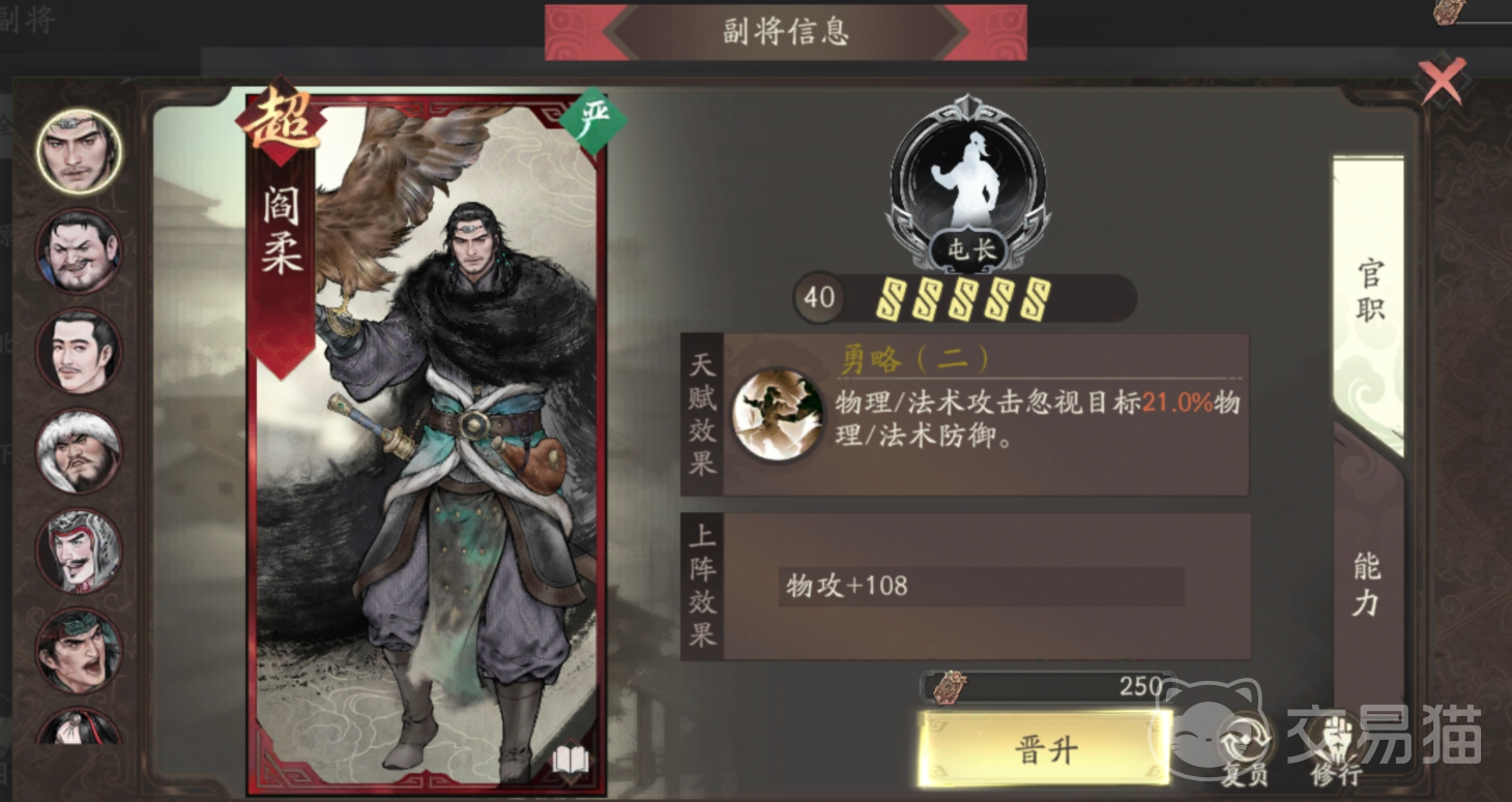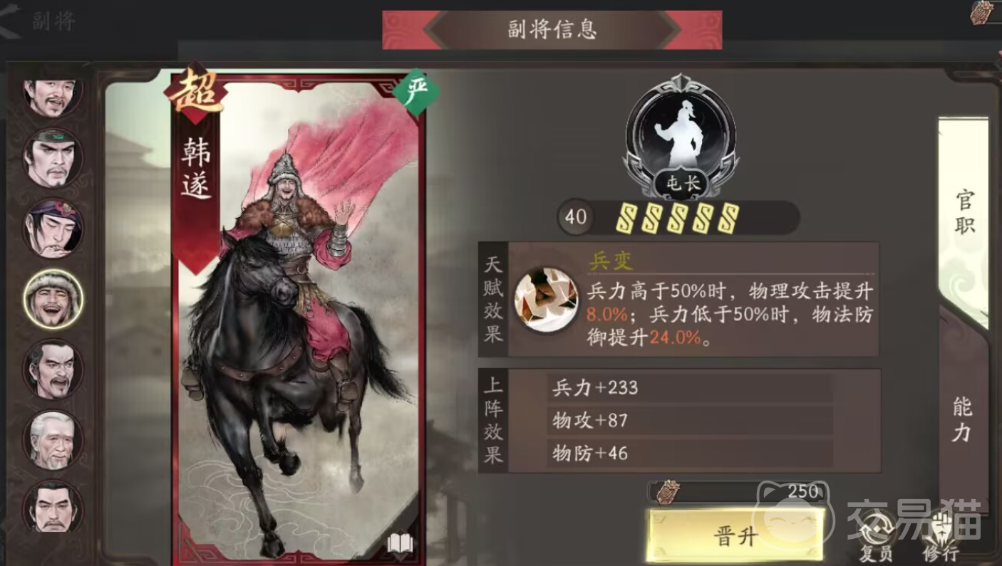 主将40级开启双副将槽位,建议优先选择金色品质副将进行重点培养,因其拥有更高的成长潜力与天赋强度,长期来看更具战略价值。
