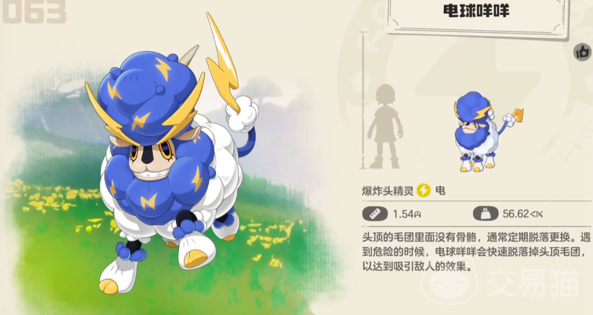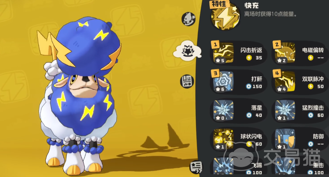 玩家可在月牙湖岸或聆风塔地等区域捕捉初始形态的电咩咩,并通过培养完成两次进化获得电球咩咩。该精灵总种族值为498,在整体数值中处于中游水平。六维属性分布较为均衡,其中速度表现尤为突出,其余属性则无明显短板也无显著优势。其核心特性为:离场时可为己方队伍积累10点能量,这一机制在特定战术体系中具备一定战略价值。