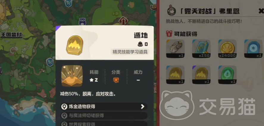 战胜弗里恩后,玩家可获得多种奖励资源,包括稀有货币、智慧羽毛、250点魔法经验、24000洛克贝。此外还会掉落2星普系技能“力量增效”,可提升100%物攻能力;1星地系技能“泥巴喷射”,造成60点魔法伤害;2星地系技能“遁地”,具备50%减伤效果并可脱离战斗状态,适用于防御反击场景;还有3星草系技能“酶浓度调整”,提供70%伤害减免,若对方使用应对类技能,则自身恢复25%生命值。