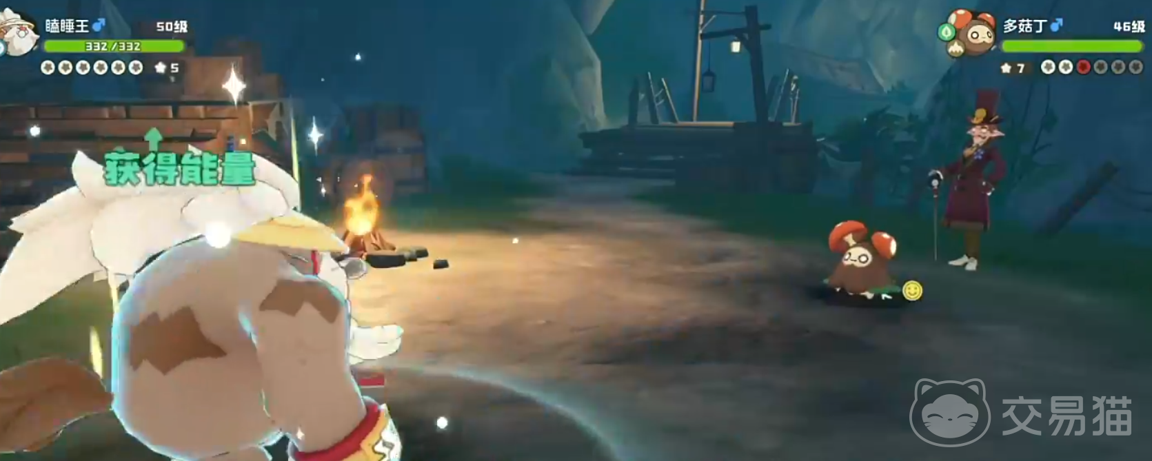 前往该区域时,可先传送到洞穴秘境点位,随后向左侧隧道行进,最终会在一处木制平台发现商人弗达的身影。与其对话后即刻开启第一阶段战斗,此阶段对方拥有3点魔力值,意味着将派出三只不同属性的精灵迎战。