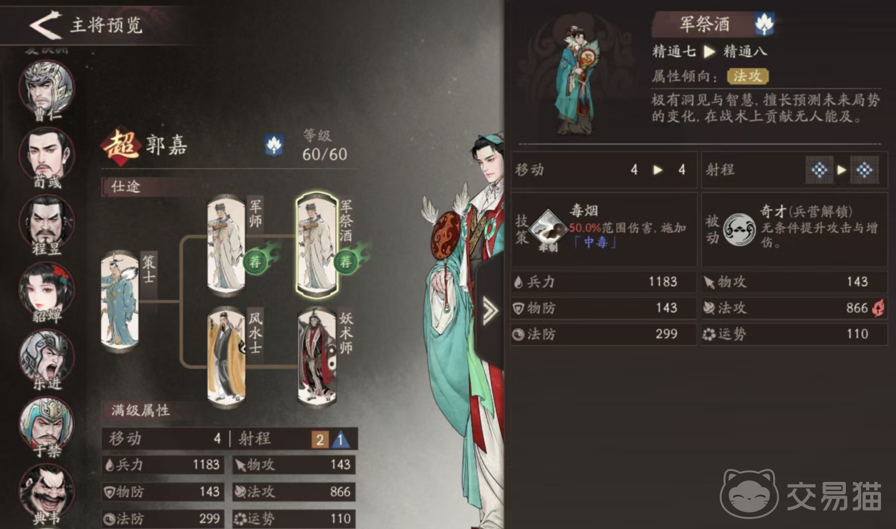 戏志才之所以成为副将中的佼佼者,关键在于其兼具增伤与续航的双重特性。这种机制特别适配依赖技能输出的谋略型主将。其中,郭嘉是与其配合最为默契的选择。作为游戏中典型的高爆发远程法师,郭嘉虽具备强大的控场和负面状态施加能力,但身板脆弱。戏志才提供的法攻加成与技能减伤,恰好弥补了这一短板,使其持续输出能力大幅提升。