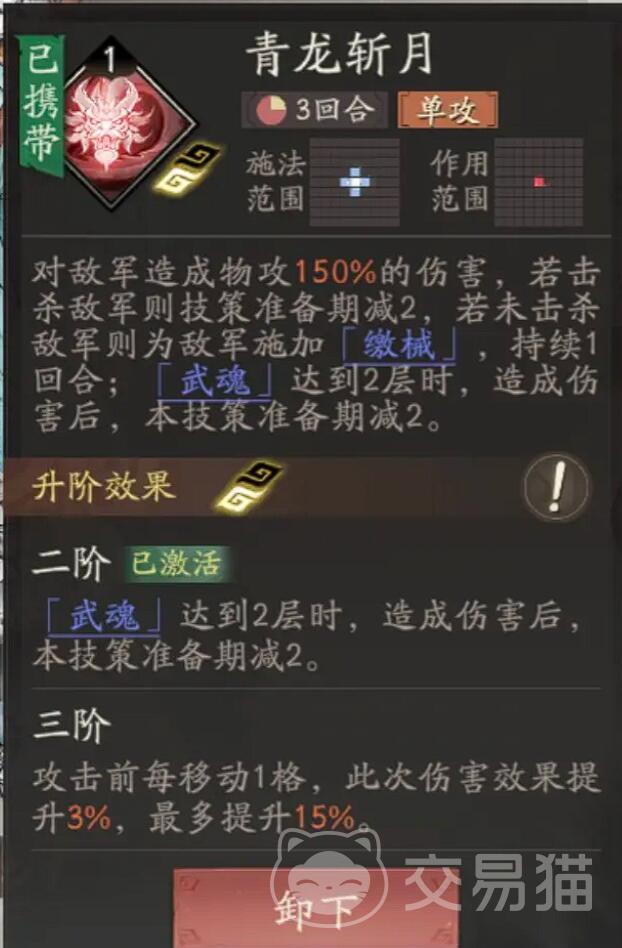 关羽的核心强度来源于天赋“武圣”与技能机制的高度联动。每次主动攻击后可触发再行动效果,击杀单位叠加1层武魂,叠满后大招升级为十字型AOE伤害。若未能击杀,则自动触发“拖刀计”,主动伤害降低70%,但反击伤害提升70%。技能“青龙斩月”造成150%单体伤害,成功斩杀目标可减少2回合冷却;若未击杀,则使目标进入缴械状态。“威震华夏”提供160%单体伤害,斩杀后全队获得20%攻击力加成,且在武魂满层时转化为群体伤害。值得注意的是,技能等级不宜过早提升,应在武魂解锁后再集中资源强化,以获得最大收益。