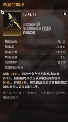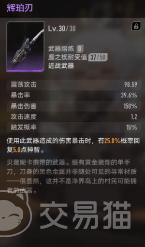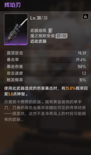 从常规强度角度分析,辉珀刃则是一款更适合大多数玩家使用的过渡武器。新人玩家完成初期剧情后即可获得,无需额外抽取或合成。若后期资源充足,也可通过卡池进一步获取强化材料。该武器具备暴击时提升神智的特性,对于前期能量紧张、技能释放受限的新手而言极为友好。更重要的是,它适用于各类角色,通用性强,堪称开荒阶段的理想选择。