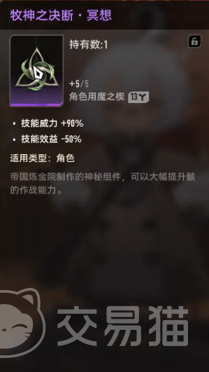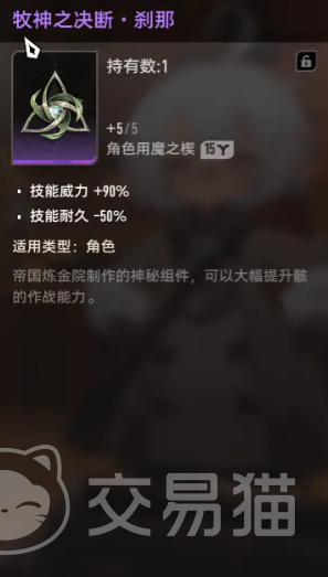 这两个至关重要的模组分别是:牧神之决断·冥想与牧神之决断·刹那。它们各自具备强大的增益效果。其中,“冥想”能够提升90%的技能威力,同时降低50%的技能效果触发频率;而“刹那”的机制则更为独特,在同样增加90%技能威力的基础上,还能使技能耐久度提升,进一步延长加成状态的持续时间。对于依赖普通攻击输出的玩家来说,这些看似影响技能性能的设计并不会造成负担,因为普攻流的核心本就不在于频繁使用技能,而是通过平A打出高额伤害。