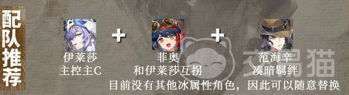 目前冰系阵容中仅有伊莱莎与菲奥两位角色表现突出,因此走冰系路线时基本绕不开这两人。若再加入范海辛,还可触发暗系羁绊,进一步丰富阵容搭配策略。不过范海辛的核心价值更多体现在与菲奥的联动上,主要作用是为伊莱莎提供额外增益。未来若有更强力的角色上线,范海辛可酌情替换。整个阵容应以保护伊莱莎为核心目标。在副属性选择上,暴击率和冰属性伤害加成必不可少,其次是攻击力百分比或爆伤提升。词条方面推荐配置“变量侵蚀”、“协同增益”与“蚀刻残响”,这套组合能显著提升她的整体输出效率。