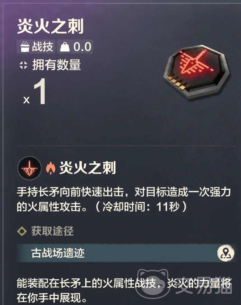 荒野起源炎火之刺作用解析 荒野起源长矛战技搭配推荐