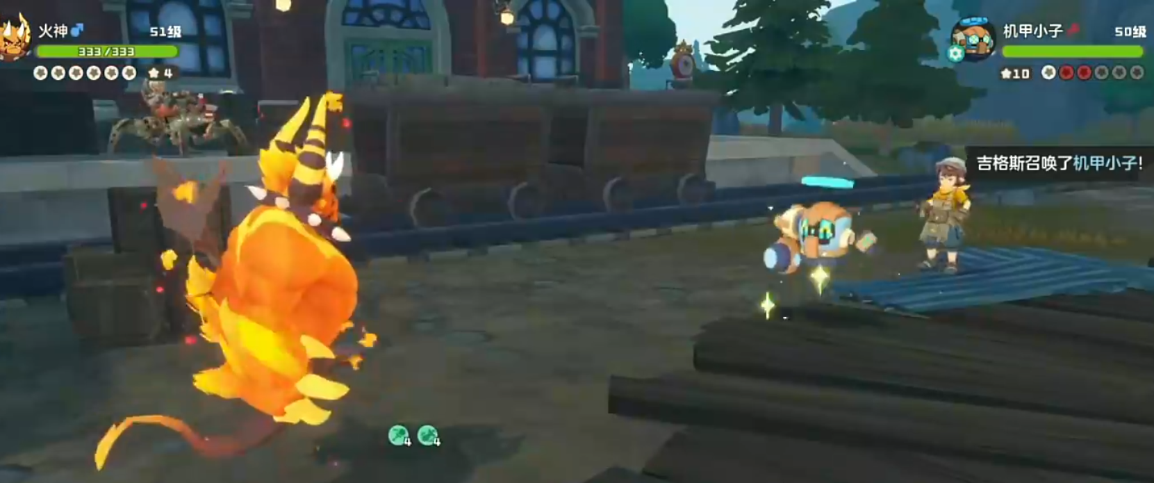 接下来依次出场的仍是机甲小子、立方人和权杖5,均为机械系。若此时火系技能能量不足,可通过释放三次“阻燃”技能来强化“火苗”,从而打出更高倍率的克制伤害,有效应对后续战斗。
