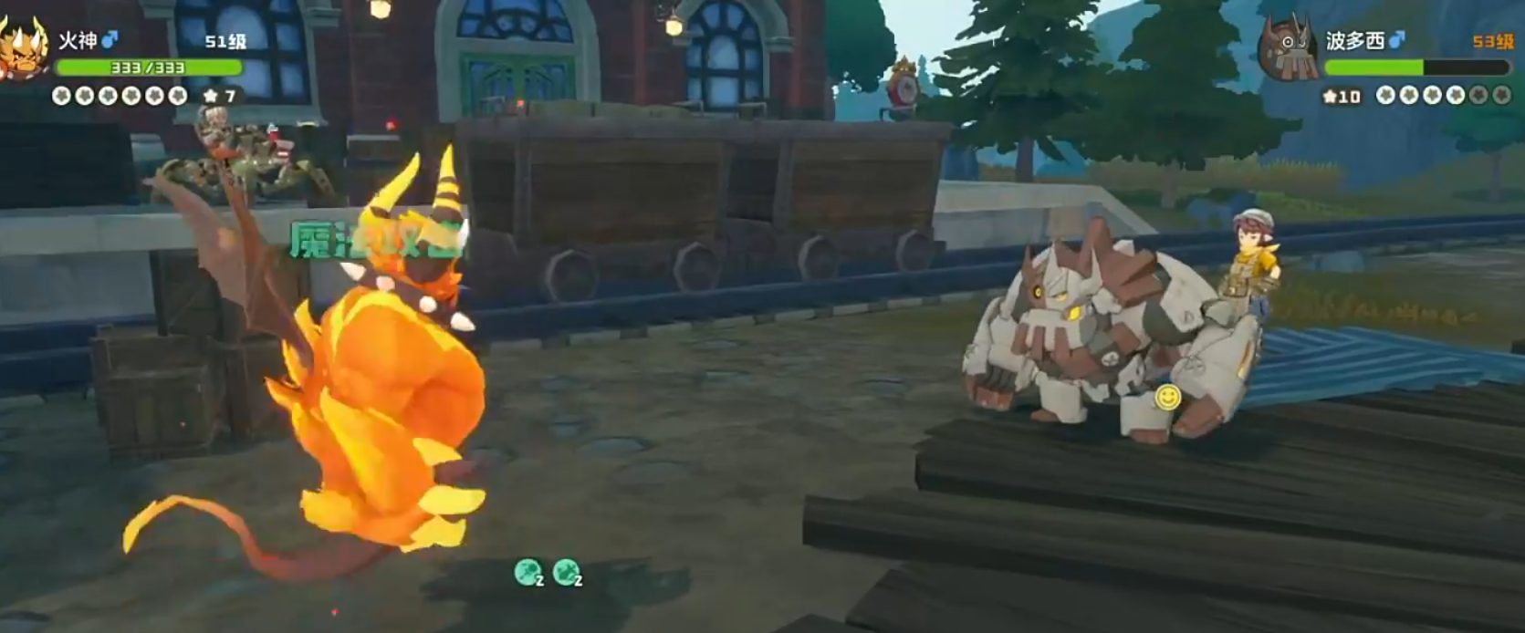 第三位为机甲小子,仍为机械属性,使用相同的打法即可顺利解决。完成第一局后,将立即进入第二轮挑战。此阶段对手共派出四只精灵,第一位为地系与机械系双属性的波多西,由于抗性略高,可能需要两次火焰切割才能击败,建议确保能量充足。
