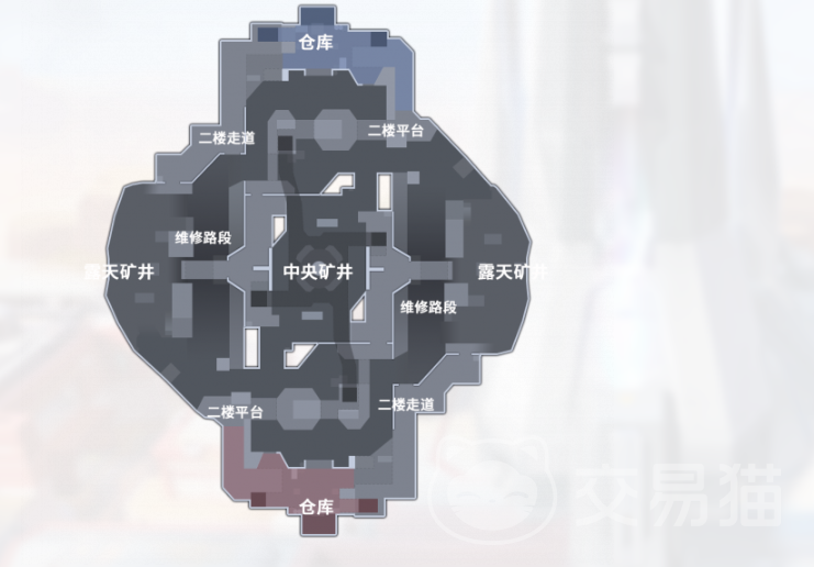 整张地图呈对称分布,两端各设有一座大型仓库,用于存放采集到的巴布洛晶体。中央区域为核心地带——中央矿井,其左右两侧分别为维修区,外围则延伸出露天矿井区域。具体结构可参考下方示意图。目前此地图仅开放晶矿抢攻玩法,节奏较快,兼具策略与操作乐趣,适合多人协作竞技。
