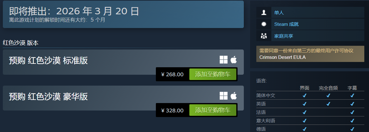红色沙漠发售价格曝光 红色沙漠多平台上线时间及售价详情