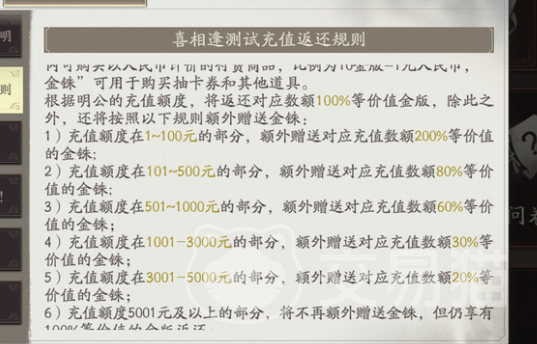 最近不少玩家对本次测试期间充值返还的具体规则感到困惑,尤其是关于金版和金铢的返还比例和计算方式。究竟充值多少能返多少?金铢又是如何返还的?本文将为大家详细解析,并通过实际例子帮助你快速理解整个返还机制。