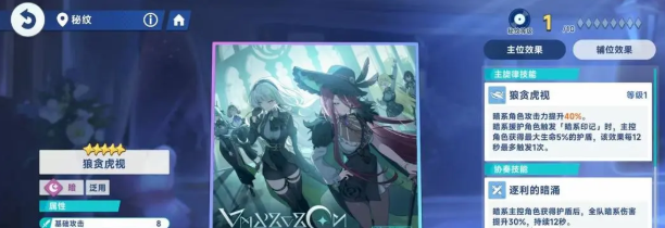 协奏技能的触发需要满足特定条件——积累足够的音符能量。当条件达成后,“狼贪虎视”的协奏技“逐利的暗涌”即可启动。一旦暗系主控角色获得护盾,全队暗属性伤害将提升30%,持续时间为12秒。无论是配置在主位还是辅位,每个秘纹都有对应的主效与辅效。例如,当暗系援护角色成功触发暗系印记时,主控角色将额外获得相当于其最大生命值5%的护盾,此效果每12秒可触发一次。若将该秘纹置于辅助位置,便可通过援护角色频繁叠加护盾,从而实现战力成倍增长。