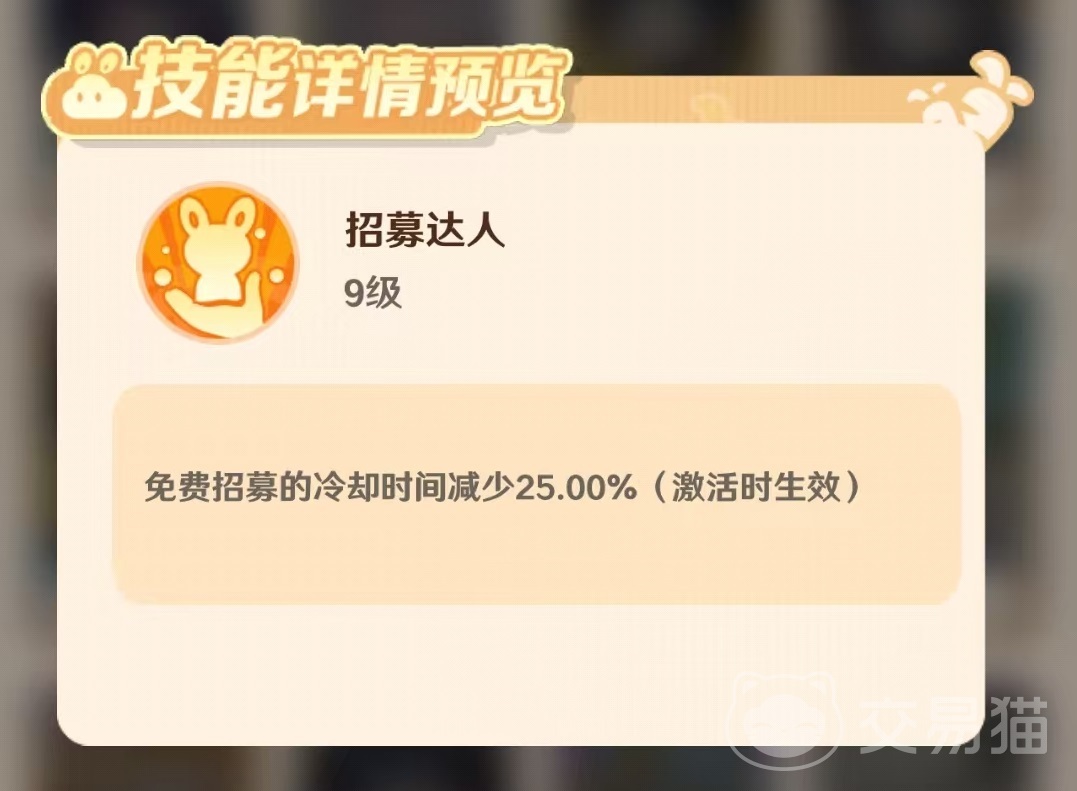 值得注意的是,部分技能版本中会将群体增益替换为单体加速效果——即在经营过程中提升自身6.5%的移动速度,此效果在工作位上即可生效,有助于缩短操作间隔。相较之下,虽牺牲了部分团队辅助能力,但在特定场景下仍具战术价值。另外,她还拥有一项名为“招募达人”的被动技能,能够减少25%的免费招募冷却时间,无需额外触发条件即可持续发挥作用。对于依赖常规招募获取资源的非氪金玩家来说,这一特性在长期积累中将带来可观收益。