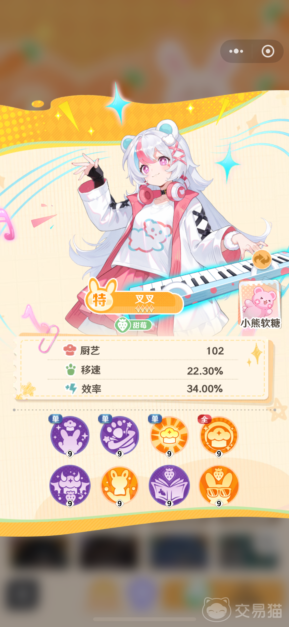 叉叉是一位性格呆萌、气质甜美的得力助手,对工作充满热情。他拥有独特的正向影响能力,在与其他同特质员工协同作业时,能进一步激发团队表现。他的专属伙伴是一只调皮的小熊软糖,这只软糖性情温和,无论怎么揉捏都不会生气,当叉叉情绪波动时,捏一捏它便能有效缓解压力。
