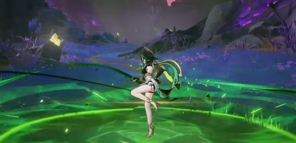 从角色设定来看,奈芙尔是一位以草元素为主的法器输出型角色,整体风格神秘且富有气质。她的战斗机制围绕“月绽放”反应构建,技能之间具备高度联动性。其元素战技可使其进入“影舞”状态,在此期间积攒“草露”资源,用于强化重击和提升爆发伤害。