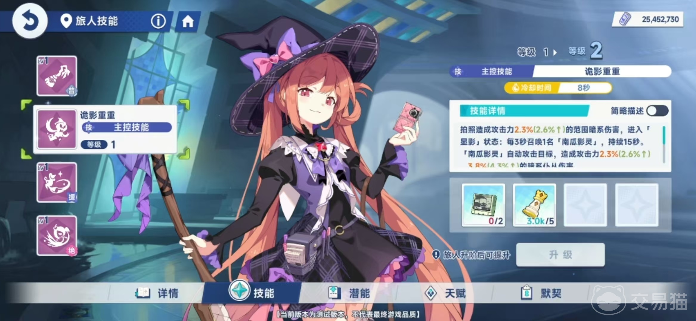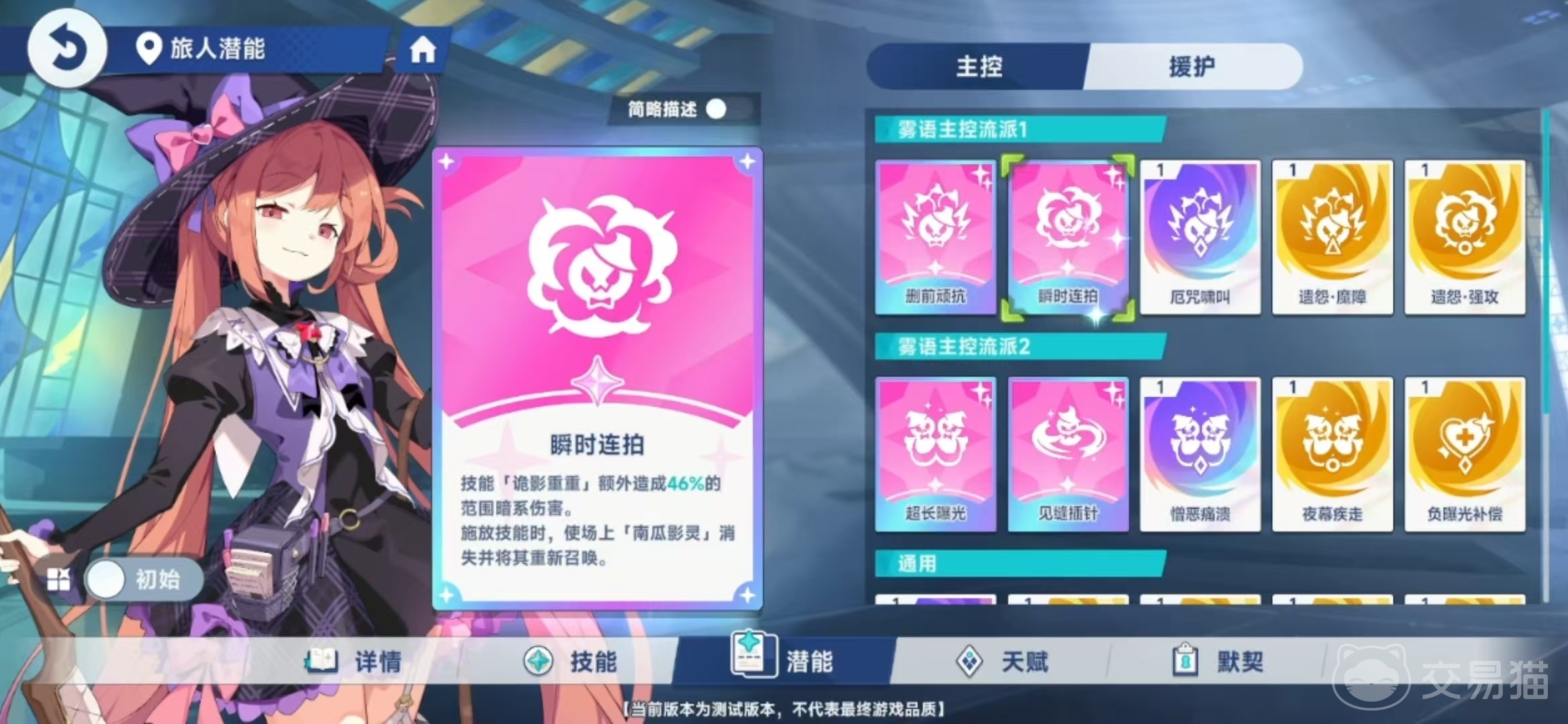 其援护技可在战场中布置法阵,每隔0.5秒召唤一个提灯影灵,持续6秒。提灯影灵通过自爆方式造成范围暗系仆从伤害,并附加“暗吸”印记,增强后续伤害反馈。必杀技则会凝聚出巨型影灵,对大范围敌人实施多次打击,具备极强的清场能力。在潜能加点方面,推荐优先考虑“删前顽抗”,该选项不仅缩短“诡影重重”的冷却时间,还能在南瓜影灵消失时引发自爆,提升输出效率;“瞬时连拍”则可在技能释放时重置场上所有南瓜影灵的持续时间,并追加额外伤害,进一步强化循环节奏。