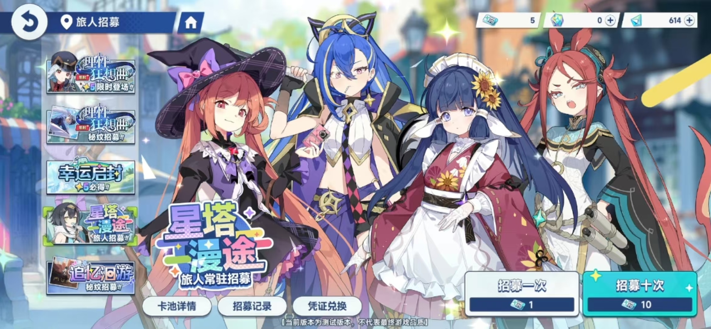 游戏中提供三种可抽取角色的主要卡池类型:旅人限时招募、幸运招募以及常驻招募。其中,幸运招募为新服开启时特有的新手专属卡池,仅在服务器初期开放一次,后续不会再次出现。该卡池使用启程礼券进行抽取,礼券可通过参与各类活动获取。每位玩家最多可在该池中进行30次招募,达到上限后卡池自动关闭。五星旅人的基础出率为1.6%,并设有保底机制——累计招募不超过30次必得一名五星旅人。这一机制确保了新人玩家能够稳定获得核心角色,快速组建初始阵容。