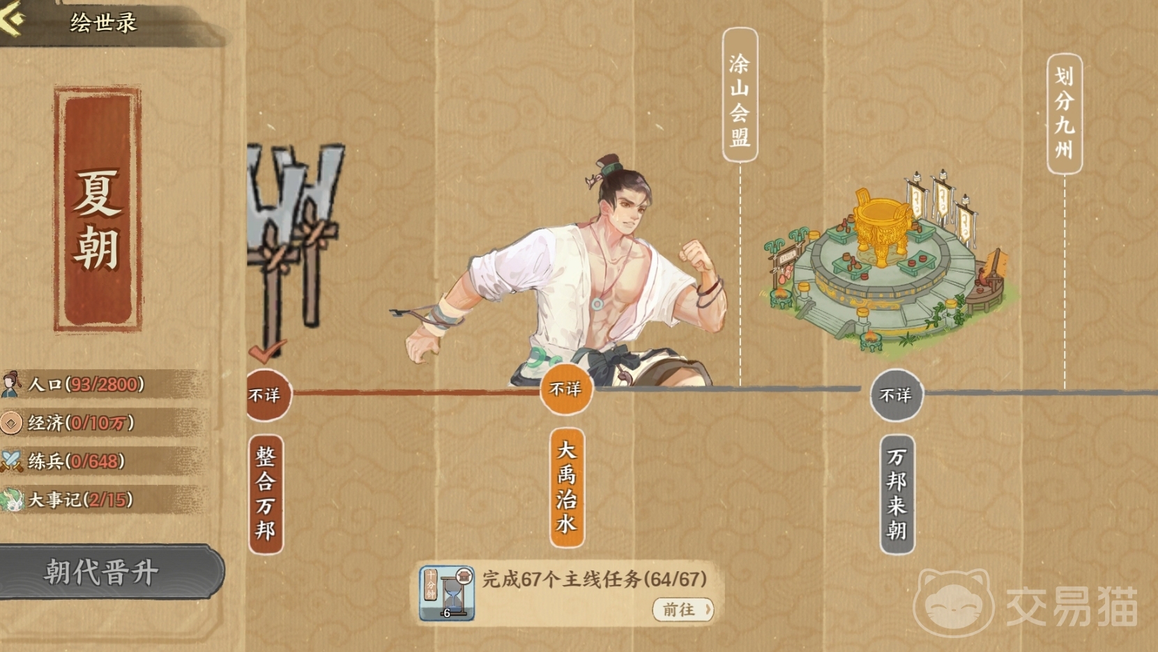 游戏核心系统“绘世录”记录了各时代的重大事件,随着主线任务推进,玩家可解锁对应的历史画卷。当某一朝代的所有事件全部达成后,即可通过朝代晋升机制进入下一个历史阶段,延续文明发展的脚步。此外,在识海挑战中会随机触发多种情境抉择,考验玩家判断力,同时可通过收集识海碎片兑换稀有奖励,丰富探索维度。