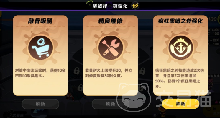 在对战过程中,系统会随机刷新出五种不同类型的武器供玩家选择,这些武器需消耗金币购买,各自具备独特的性能特点。初始阶段每位玩家可携带两件武器进入战场,随着回合推进,每完成一轮挑战即可解锁一件新武器,最多可使用更多武器组合。同时,战斗中还会出现三种强化技能供玩家挑选,随机掉落的增益效果能够显著提升角色战斗力,合理搭配技能与武器是获胜的关键因素之一。
