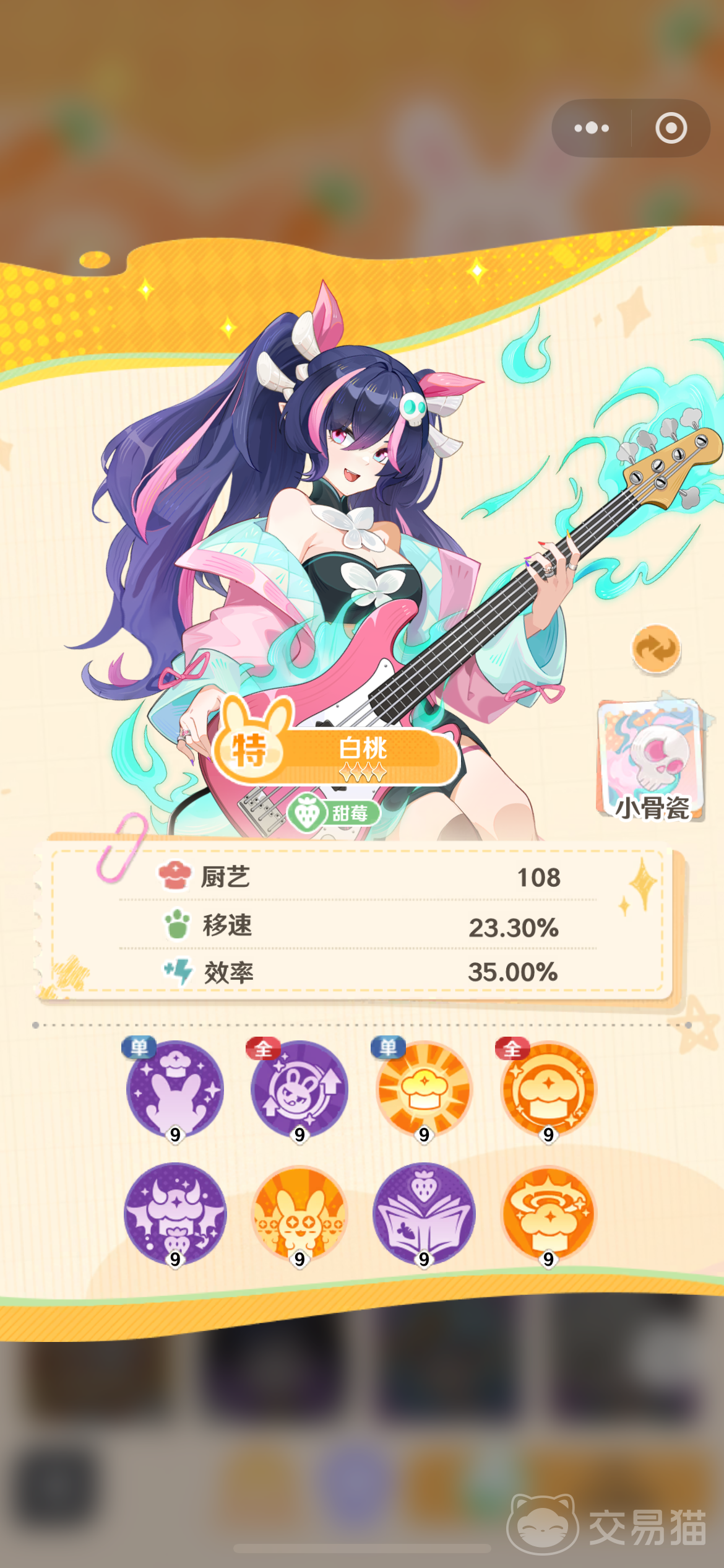 以白桃为例,作为一名橙色品质的高级店员,其厨艺属性高达108,在同类角色中属于顶尖水准。当她上线工作时,不仅能独立承担高强度订单处理任务,还能通过技能机制为整个团队带来增益。搭配她的半生灵“小骨瓷”,可在十二星阶段解锁形态变化,幻化成一把随行之琴,始终伴随左右,象征着主仆之间默契无间的协作关系。若为其配备具有相同特质的能量源,还可进一步激活属性加成效果,全面提升工作效率。