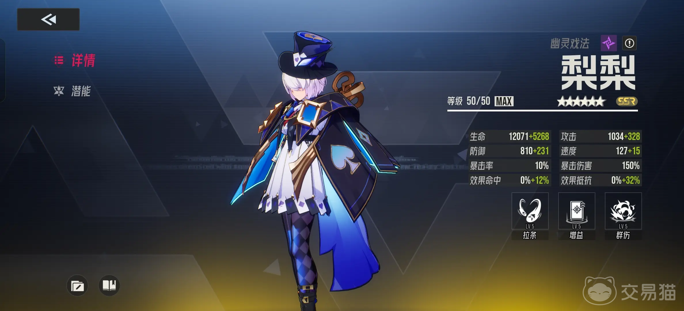 被广泛誉为T0级别的全能辅助,梨梨几乎适用于所有主流阵容体系。尽管不具备复活功能,但她集加速、增伤、拉条、重置冷却等多项核心辅助机制于一身,极大优化了团队行动节奏。一技能除造成240%伤害外,还有50%概率为自己及行动进度最低的队友提升20%行动条。“双生戏法”状态下,助战单位必定出场,且每次轮到她时自动增加30%行动进度。二技能可为友方附加同类型增益,并根据是否已有“双生”状态,分别提供速度提升或暴击伤害增强效果——后者可带来高达50%的暴击伤害加成与立即行动机会,是扭转战局的关键手段。