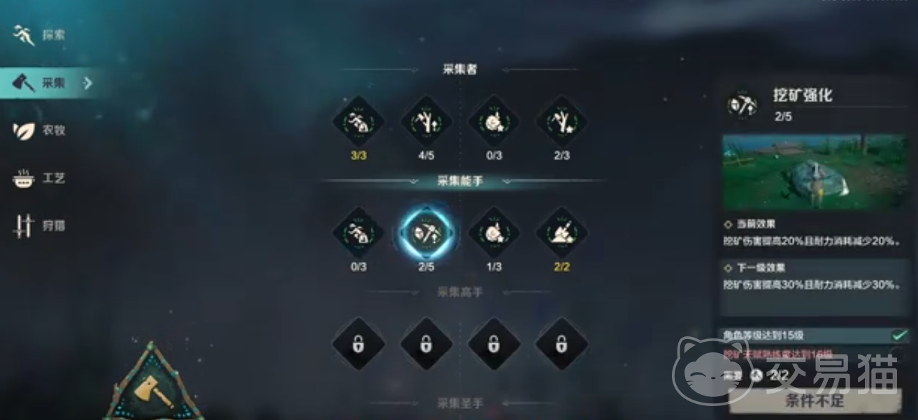 游戏内的天赋系统划分为五大模块:探索、采集、农牧、工艺和狩猎。每个模块的加点都会强化对应的功能表现。例如,在探索类天赋中投入点数,可以有效降低奔跑与跳跃时的耐力消耗,提升移动续航能力。