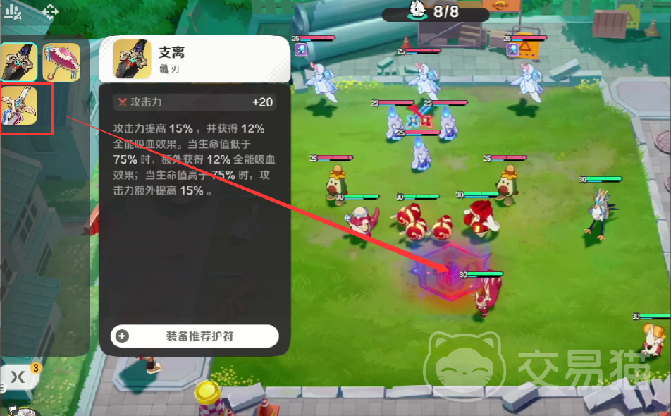 若队伍中同时存在角色“刃”,还可搭配其专属装备“支离”,为目标单位提供15%的基础攻击加成以及12%的生命吸取效果。此组合与冠军爵的胜利誓约形成联动,大幅强化先手压制力,使敌方难以组织有效反击。