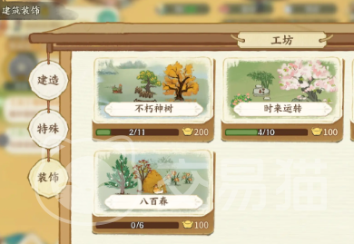 完成基础清理与收纳后,就可以着手添加装饰元素来提升整体视觉氛围。目前游戏中提供四个不同风格的主题装饰套装,可根据个人喜好自由选购并应用于场景布置中。这些装饰物将成为后续布局的核心组成部分。在完成前期准备后,正式进入规划设计阶段,首要任务是实施“引水筑田”。这是整个建造体系中最核心的一环。可在中心区域保留草坪空地,一侧连接水源引入水流灌溉农田,另一侧则铺设通行道路,便于居民日常耕作与管理作物。