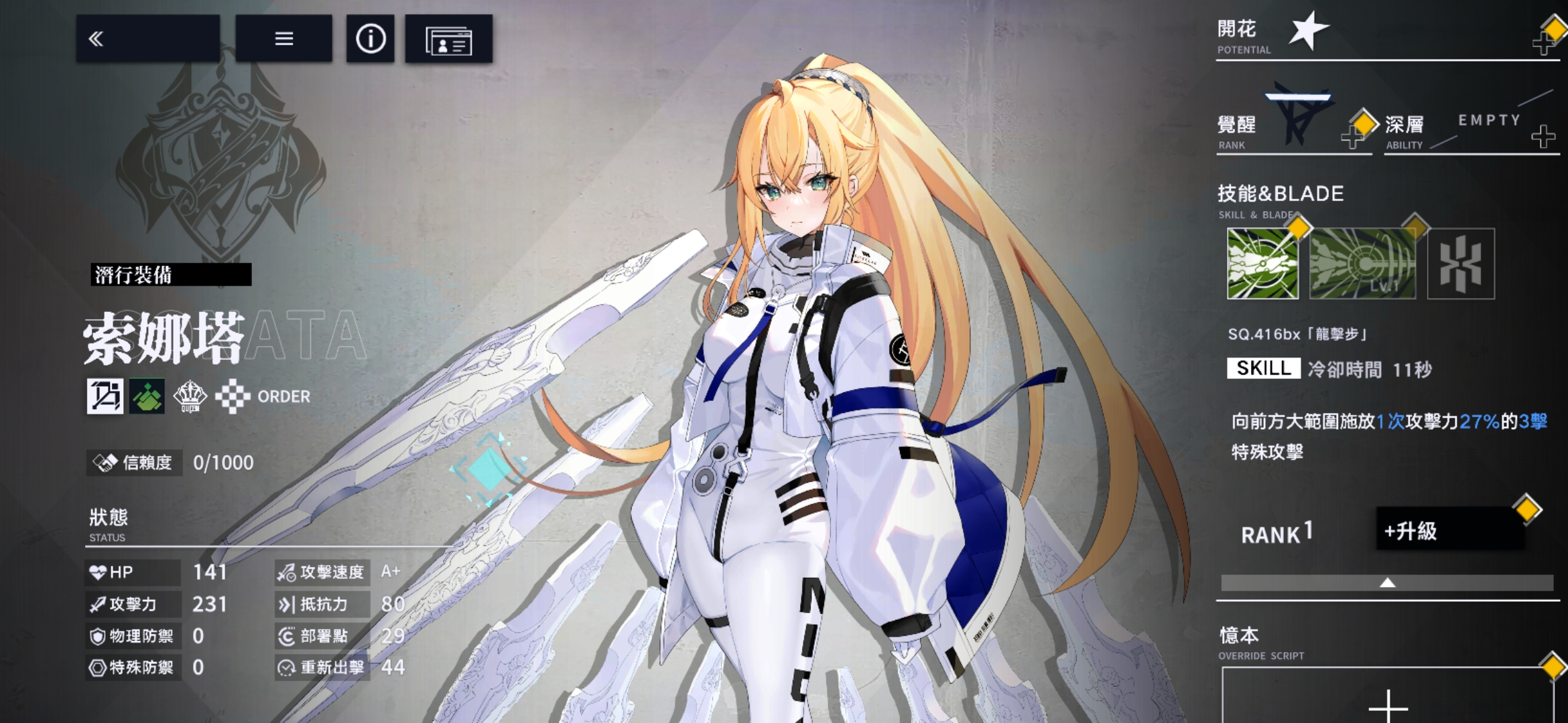 从角色定位来看,索娜塔属于典型的群体伤害型近战单位。她在激活BLADE技能期间,自身攻击力将提升10%,进一步强化了爆发阶段的输出能力。这一特性使她在高强度战斗或需要集中火力消灭目标的阶段表现出色。不过需要注意的是,由于技能冷却周期较长,若施放时机不当,容易导致输出真空期,因此建议配合具有控制能力的队友协同作战,以最大化技能收益。