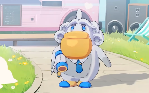 鸭法士是一位形象鲜明的白色精灵,最引人注目的是它那宽大的鸭嘴造型和标志性的发型,搭配蓝色领带与手持的法锤,整体造型极具辨识度。该精灵以魔法审判为核心战斗方式,攻击时可施加持续性的魔法伤害,并附带一定概率的眩晕控制效果。这种兼具输出与控场的能力,使其在团队中能有效打乱敌方节奏。此外,鸭法士性格中带有强烈的表演欲,常幻想自己是主持正义的法官,这一特质也体现在其战斗动作与技能特效之中,成为战场上不可忽视的存在。