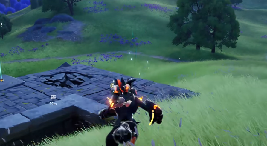 飞行途中需注意观察地面地形变化,当发现由石块构筑的古老遗迹结构时,即可操控飞行单位降落。虹光星魔师通常刷新在该类遗迹周围,尤其偏好出现在附近大型树木的根部或树影覆盖的区域。若初次降落未能发现目标,可围绕遗迹周围的植被带进行环绕式搜索,持续移动有助于提高遭遇刷新的概率。