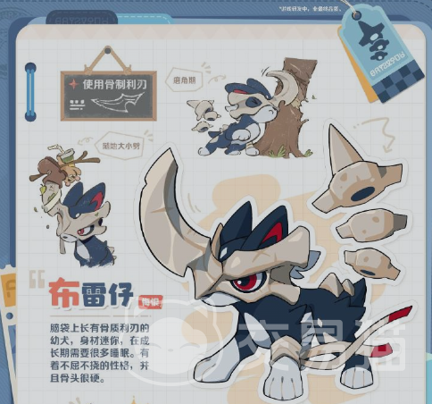 布雷多格属于幼犬形态的精灵,整体身高仅为99厘米,体型娇小但充满力量感。其头部生长着一把形似利刃的骨角,质地坚硬且锋利异常。平时它常会用路灯或墙壁打磨自己的角,动作认真又带着一丝萌态,展现出强烈的个性意识。别看个头不大,骨骼结构极为坚韧,性格倔强不服输,这种反差设定让不少玩家一见倾心。