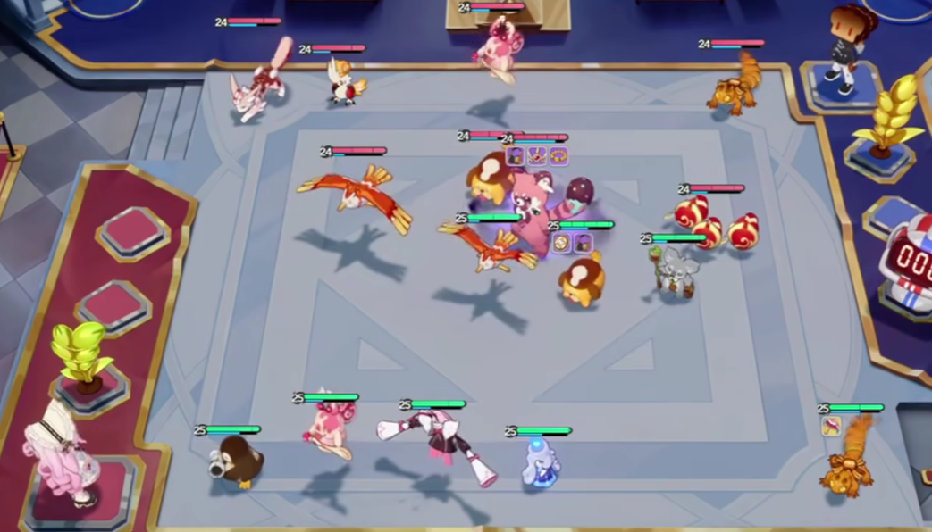 由于憨堡身处后排,面对具备突进能力的敌方单位时较为脆弱,容易在战斗初期遭到集火消灭。因此,在构建阵容时推荐搭配布丁狗作为前排主坦。布丁狗不仅能有效吸引敌方火力,还具备出色的防御力,能够为后排创造安全输出环境。