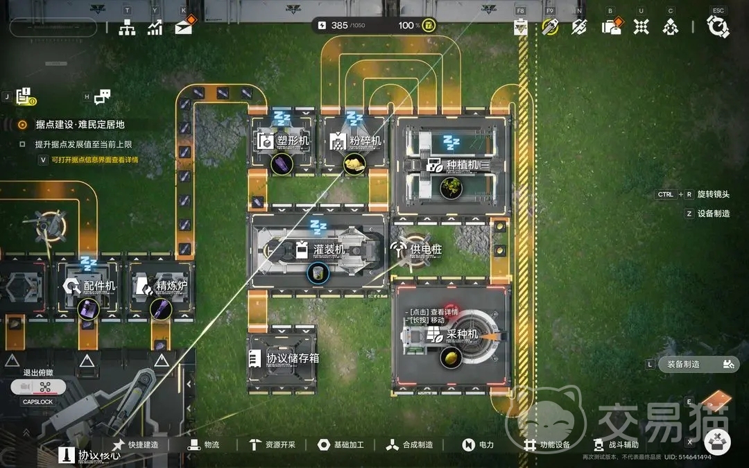 1、选址规划。首先应确定设施建造的具体区域及朝向,可通过地图上的“空间模拟器”功能扩展可用地块;