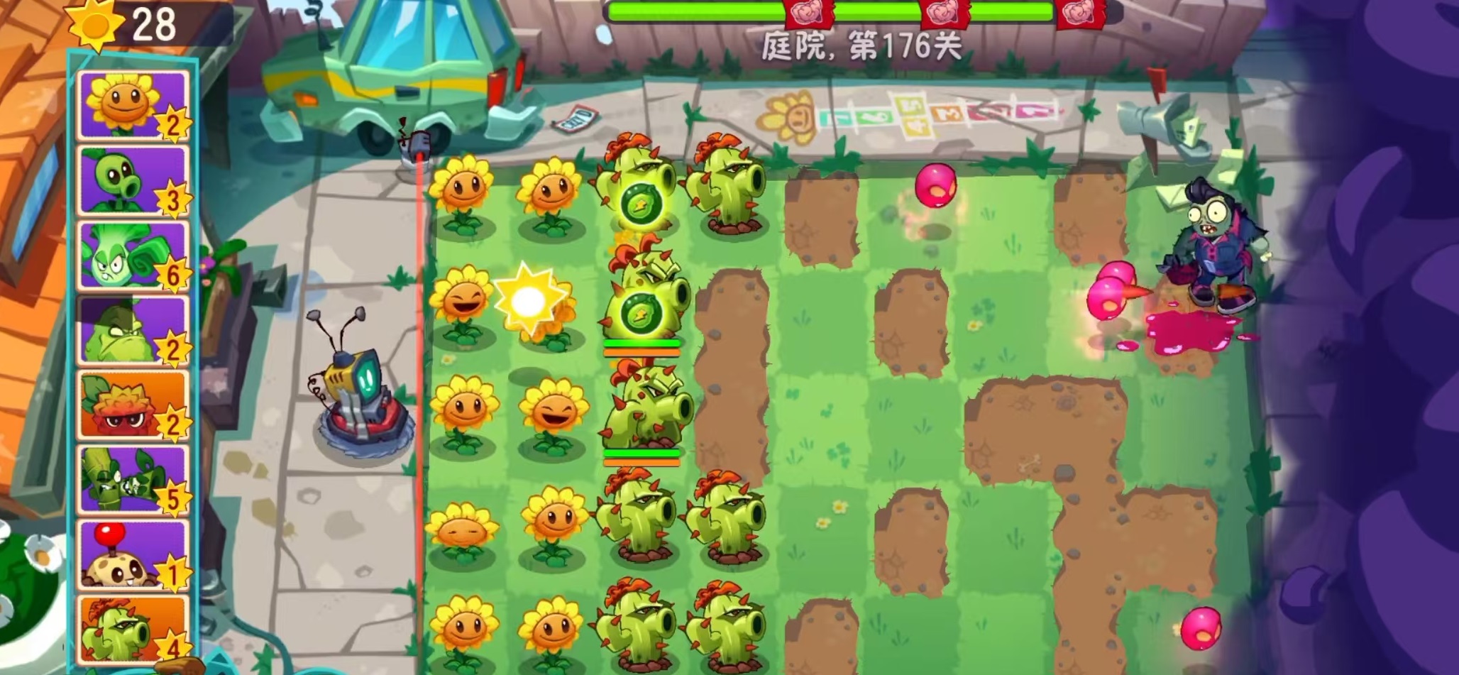 另一种高效搭配方案是结合人参大师使用。人参大师作为辅助核心,具备吸血与治疗能力,可在前排部署黄金坚果增强防线耐久,后排则由仙人掌持续输出。同时,人参大师还能为前排肉盾单位恢复生命值,显著提升阵地稳定性。此外,三叶草也是理想搭档之一,其吹飞敌人的能力可打断僵尸进攻节奏,而仙人掌则能精准打击空中气球僵尸,两者配合可全面应对各类威胁。