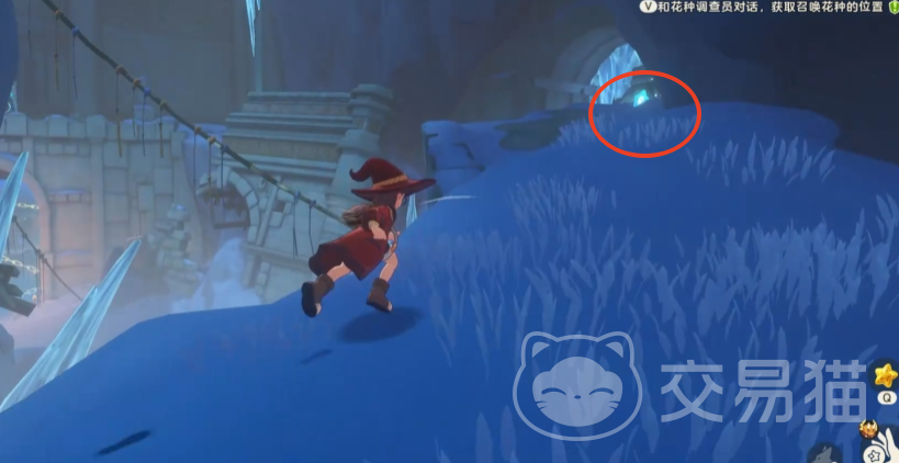 离开洞穴后,沿墙壁前进,借助冰晶地形攀爬至高处。此时可望见远处小坡上的星星图标,拾取后继续前行,前方有明显裂痕的墙体已被破坏,内部藏有第四支火炬。成功点燃后,四支火炬全部亮起,原先封锁的门随之开启。