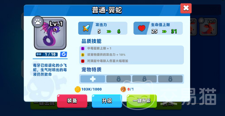 翼蛇是一种拥有飞行能力的毒系专属宠物,能够主动接近目标发动攻击。它自带中毒层数上限+1的被动效果,使毒伤叠加更加高效。宠物自身还可获得10%的攻击力提升,而在达到满级品质后,对已叠满中毒层数的敌人将造成更高的额外伤害。因此,只有与毒系技能体系协同作战时,才能真正发挥出翼蛇的最大输出潜力。