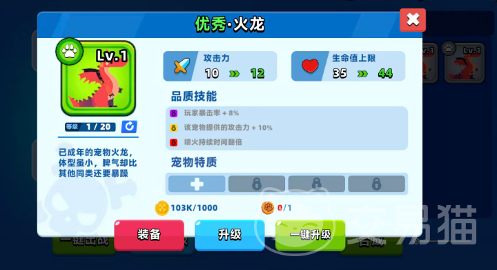 首推适合新手阶段使用的火龙宠物,该宠物可通过游戏内商店开启宝箱较容易获得。其技能以喷吐火焰对敌人造成持续伤害,进阶后可为玩家带来暴击率提升8%的效果,并额外增加10%攻击力。此外,在释放喷火技能时,持续时间还会翻倍,这一特性使其成为火系流派的理想搭档,尤其适合追求高爆发输出的玩家。