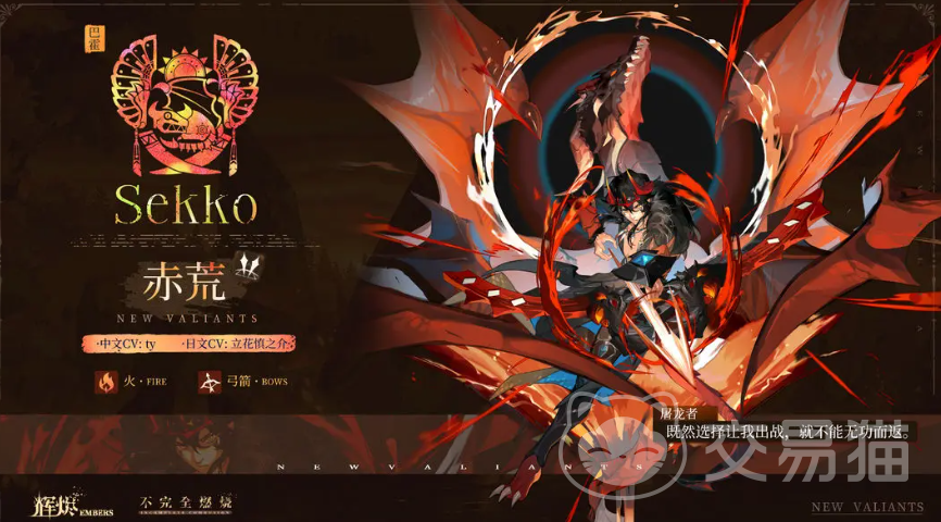 第三位登场的是赤荒,该角色以高机动性和快速行动著称。他能够跳过常规蓄力阶段,技能附带闪现效果,操作灵活且爆发伤害可观。作为火属性代表之一,他在实战中表现出极强的瞬间输出能力,若搭配火系连携体系,后续伤害将进一步放大。