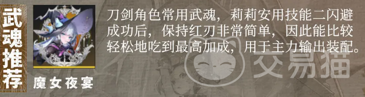 “魔女夜宴”是刀剑系角色常用的强力武魂,尤其契合莉莉安这位冠2强度角色。装配后不仅能大幅提升输出能力,还能通过技能二实现精准闪避敌方攻击。成功规避伤害后,更容易维持红刃状态,进而持续享受高额加成。因其机制与莉莉安高度匹配,故常作为主力输出角色的核心武魂进行装配。