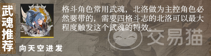 “向天空进发”属于格斗系角色通用型武魂,尤其适用于以北洛为主控输出的阵容。该武魂需消耗四格斗志才能完全发挥其潜力,能显著提升战斗中的输出频率和伤害总量。由于其机制偏向高频率技能释放,因此非常适合担任主力输出位置的角色装配使用。