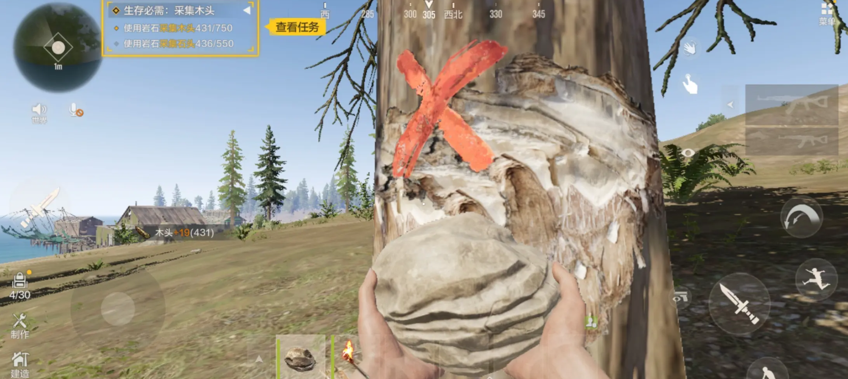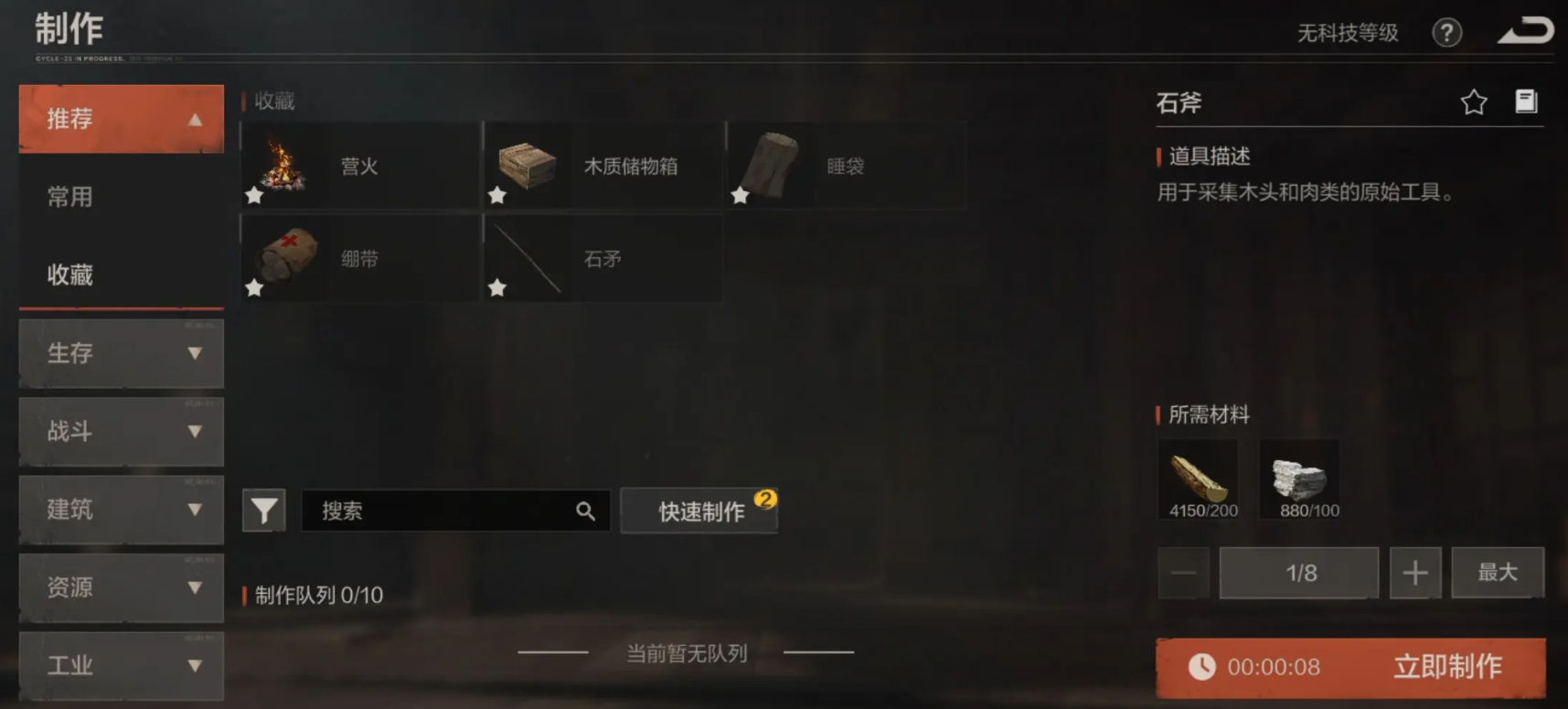 采集过程中注意瞄准资源点上的标记位置进行交互,矿石类则观察是否有闪光提示。精准击打可显著提高获取效率。积累一定材料后,建议优先制作石矛与睡袋,同时准备绷带用于应急治疗。随后查看周边是否存在低等级据点,并携带武器前往探索。