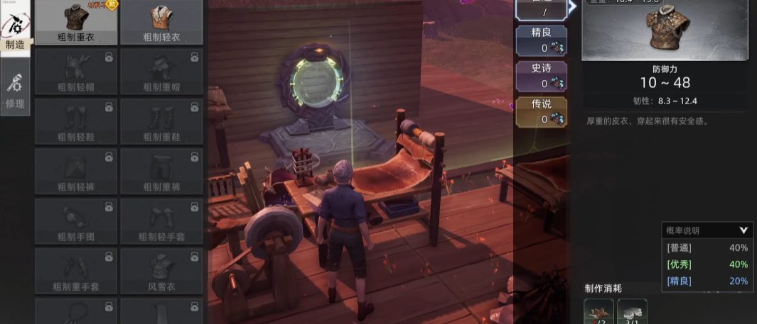 面对充满威胁的开放世界,拥有基本防护能力至关重要。新手应尽快利用已有材料合成石斧与石矛,前者能显著提高木材采集速度,后者则具备一定近战攻击能力,足以应对野狼、野猪等低阶生物的袭击。尽管这两类武器伤害有限,但在游戏前期已能满足基本需求。随着资源储备增加,可根据个人战斗偏好逐步升级至长剑或弓箭等更高级装备。