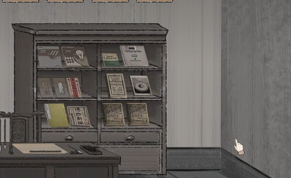 在调查书架时,注意观察中间位置存在明显空隙,经过分析可判断此处曾放置一本红色封面的书籍,且已被取走。这本红皮书与后续化学品的制作密切相关。根据提示信息进行逻辑推理,可以得出重要线索方向。